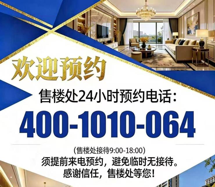重要提示:近期客户较多,项目暂不接受临时到访,看房、参观样板房请务必提前拨打该热线预约,避免空跑或排队等待。