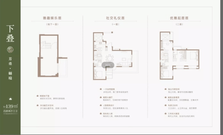 叠墅:建面约91-150㎡(上叠、中叠、下叠),主力户型含111-150㎡多户型,上叠带星空露台,下叠带私家庭院与地下室,适配改善需求。