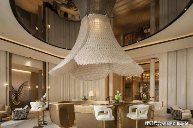 会客厅不仅承载了“私人空间之外的延伸场景”,还打造了标志性的“羽化万象”艺术吊饰,每一片玻璃羽毛造型都由经验颇丰的老师傅搭建而成,构建出光影婆娑的美学画卷。