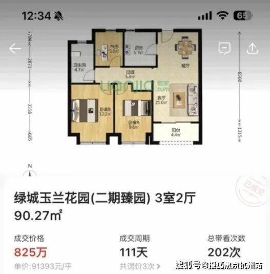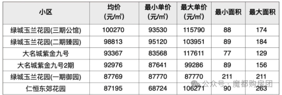 6.二手市场价格可期,旁边绿城二期今年成交一套90m²小户型,单价9.1万,比保利天奕前期小户型最贵单价还贵出近1万/m²!
