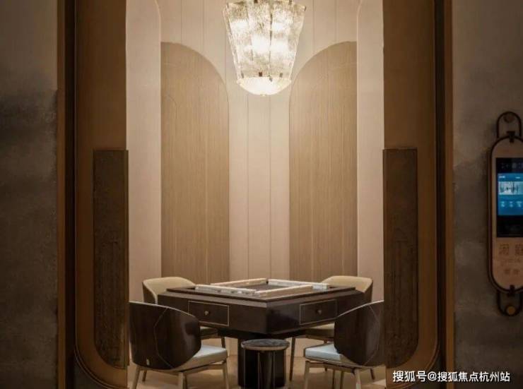 私宴厅&棋牌室承载了业主宴请、聚餐、洽谈、品茗、娱乐等多元社交场景。私宴厅当中悬挂的石材,来自项目团队多番挑选,来自一个奢石展馆里的孤品,不仅拥有昂贵的蓝色色泽,天生的羽毛状纹理更是罕见!