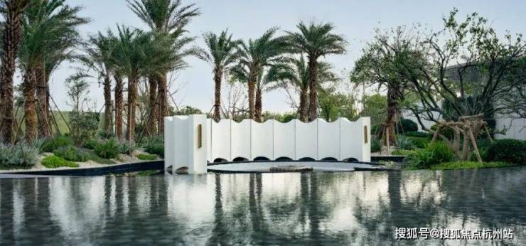 实景呈现的岛屿水院,作为保利天奕五座全球大师花园之一,在银海枣树阵、下沉式庭院、镜面池畔卡座的呼应中,成为未来居者沉浸自然的惬意之地。温柔闲适的落日廊吧,犹如身处海岛之畔,感受蓝调时刻的优雅情调。