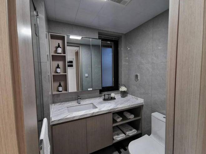 实地展现在眼前柔和的灯光与岩板搭配,轻奢考究又不失内敛,以比对效果图的真实落地还原度,在现场提前感受到生活的质感!
