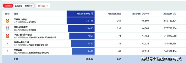 阳春伊始,项目就以成交套数、成交金额、成交单价、成交总价、成交面积“五冠王”刷屏松江成交榜;此后,一季度继续蝉联松江区销售套数&金额TOP1,半年时点仍旧是板块套数、金额、成交单价三料冠军;到1-10月,更是在松江区和洞泾板块住宅成交面积、套数、金额上再度稳居前列!