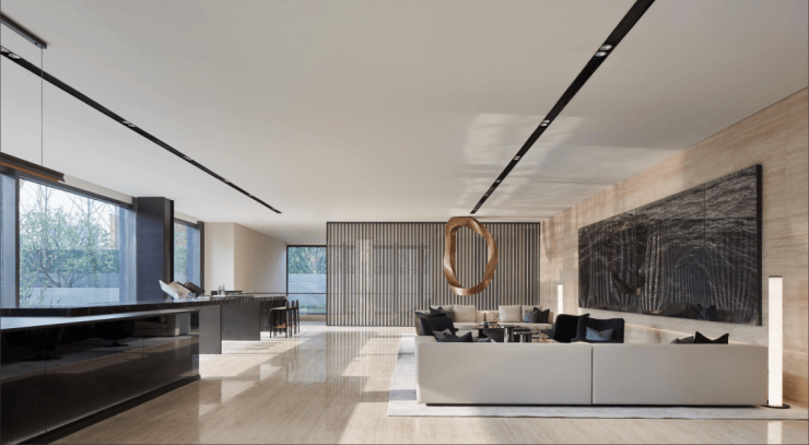 建筑方面项目采用上海独一无二的“类幕墙设计”立面,再加上平推窗与立柱一体化设计,以及超大尺度的落地玻璃窗,搭配“开放式铝板设计”。将大师级的灵感和理念做到了全方位落地还原!