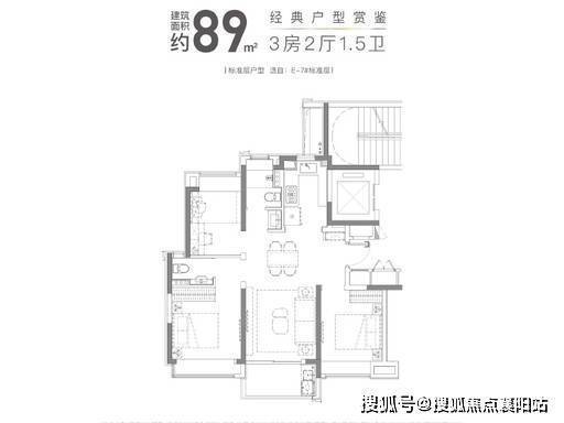 (一)建面约 89㎡三房两厅 1.5 卫:338 万起入门改善,首置家庭首选