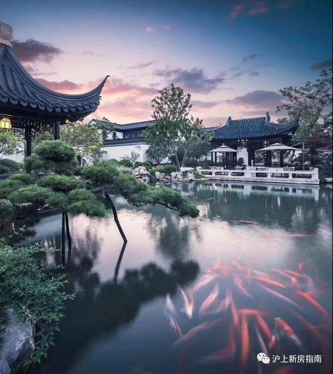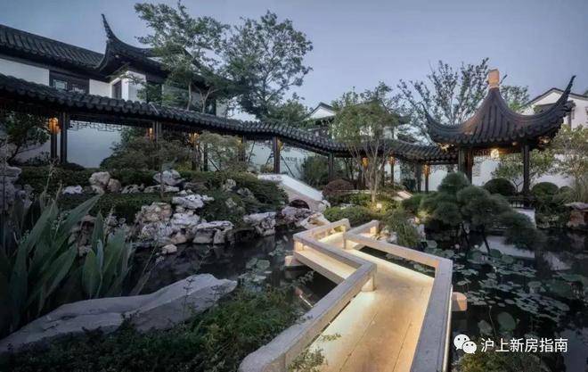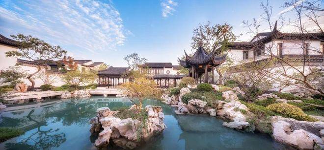 与全国在售中式作品相比,上海桃花源中轴五进制中轴园林,完整性、丰富度堪称全国之最。金瑞园坐北面南,由正南入园,中轴园林不仅设对景峰石、蜿蜒水街、太湖山石、亭台轩廊等景观节点,还以宽广山石庭园和辽阔水景,呈献潆回环抱之势,意趣无穷。另外,山林连绵、亭廊曲折,江南的温婉、隽永,尽藏其中。