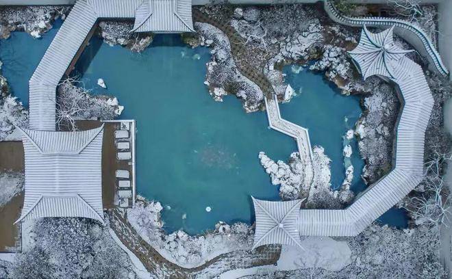 外部四水环绕,内部双龙戏水,以水带路,园以水活