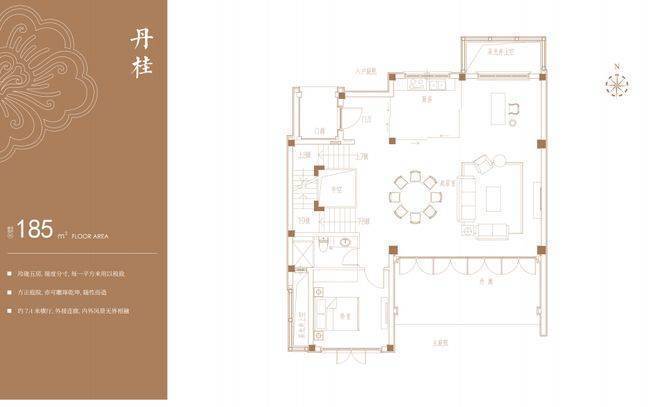 据销售介绍,房屋实际可用面积要比户型图标注面积大一些,以“丹桂”户型为例,户型图标注的建筑面积为185m²,但是层高达到9.9m,未来完全可以搭建二层,搭建后,地上使用面积可以达到约300m²左右。