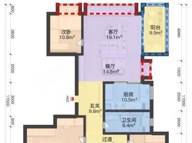 客厅:约 4.5 米宽,双联阳台(约 6.5 米)