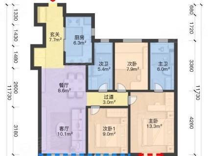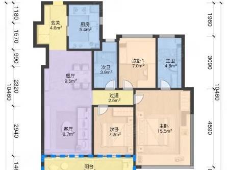 1. 建面约 112㎡ 三房两厅两卫(入门改善)