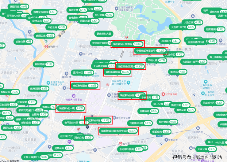 再看二手房,瑞虹新城板块次新房挂牌均价在10-18万/㎡不等,整体上越新的房子越贵,比如瑞虹6789期目前挂牌普遍在15-18万/㎡。