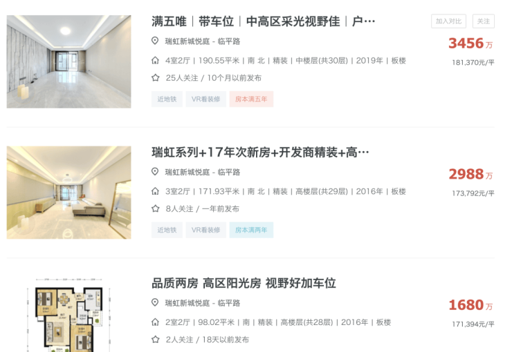 值得一提的是,从当下是市场来看,周边二手房均价其实也非常高,有一些品质次新房,挂牌价格已达18万/㎡!