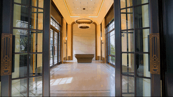 踏入挑高大堂,巴西银河白奢石与土耳其米黄系大理石的组合,构建色彩递进与质感对比的视觉层次,通过弱化棱角与流动线条,将传统直角的冷硬感转化为温润的包容性.从视觉到触觉的全感官体验设计,将空间转化为承载记忆与身份认同的载体.