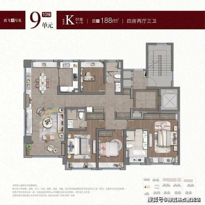 户型方面,项目将推出建面约98-122㎡3房及141-188㎡4房.