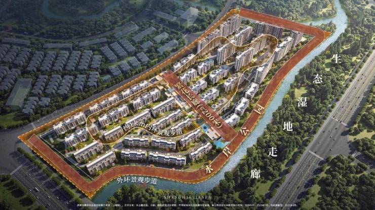 并依托约1.5公里的滨水长廊,将约11.4公顷生态湿地融为业主的后花园,借景河道,构筑多元生活剧场,穿过外滩晨钟、闲渡蒹葭、溪川雪霁,恍如在穿越时空的海派画卷中悠然漫步。