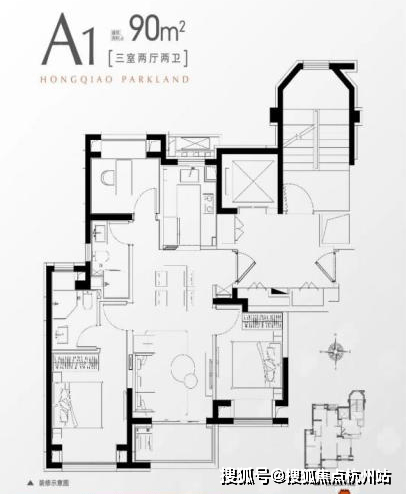 建面约90㎡的三房两厅两卫:这是一个让人一眼心动的户型。在别的楼盘,建面约90㎡做三房两厅一卫可能空间已很极限。但华发做到了双卫设计,完美解决了早高峰的抢厕尴尬,三开间朝南、飞机户型、南北通透,再加上U型厨房和主卧套房,这简直是年轻夫妻一步到位的“梦中情房”。