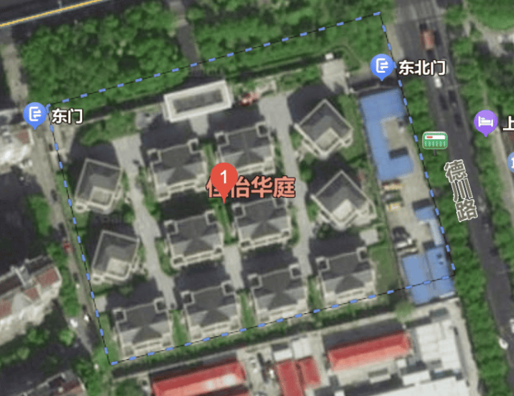 放大卫星地图来看,这个小区应该也是准现房或者现房状态,4栋独栋,16套双拼别墅(目测),建面约277-402㎡。