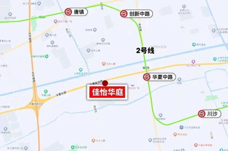 佳怡华庭应该是川沙和唐镇交界处,和唐镇仅相隔一条华夏东路,距离2号线华夏东路站约1.2km。