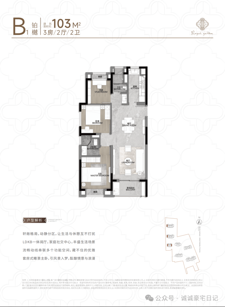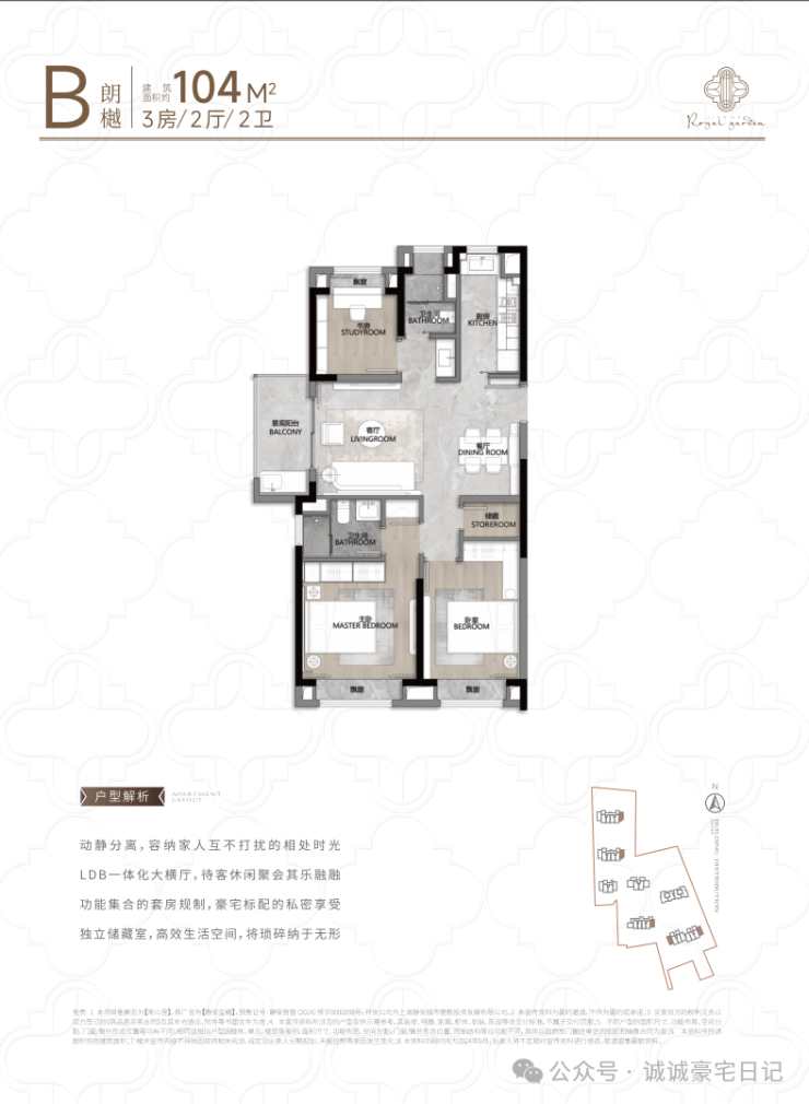 再看建面约104㎡B户型: