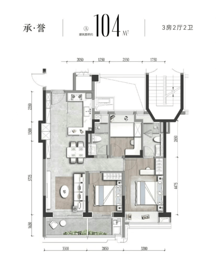 在售建面约90-104-112-119㎡3房