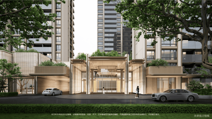 「誉静安」从酒店式落客门厅,艺廊式归家巷道,三大厅堂打造上仪式感拉满,让归途成为一种享受,在空间的转换中,完成身份与心境的双重回归。