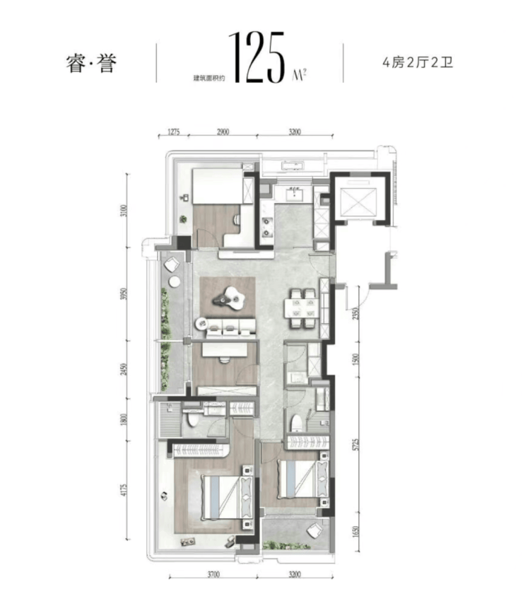 建面约125-128-143-160㎡4房