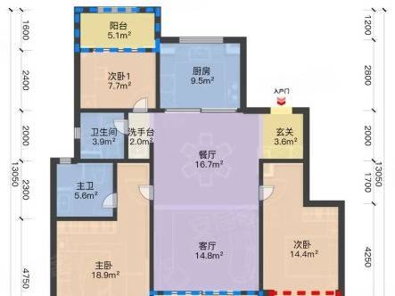 格局 : 三开间朝南 ,南向面宽约 10.5 米,全明格局