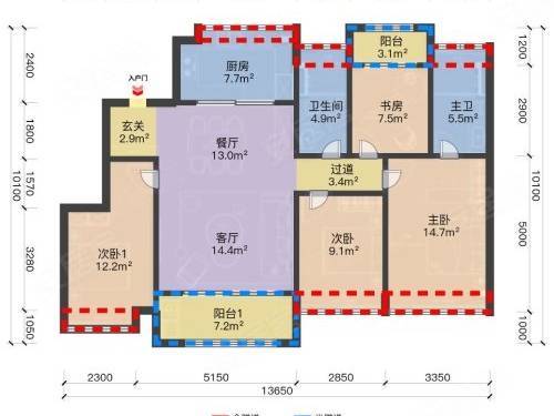 格局 :四开间朝南,南向面宽约 13 米,全屋采光无死角
