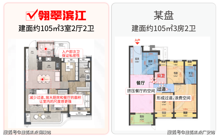 这样的站位带给翎翠滨江的优势是什么呢,我们来看一下对比:
