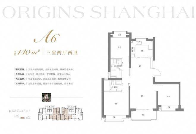 建面约143m²3房2厅2卫:格局上做到三开间朝南+南北通透,让业主起居之间沐浴更多阳光。