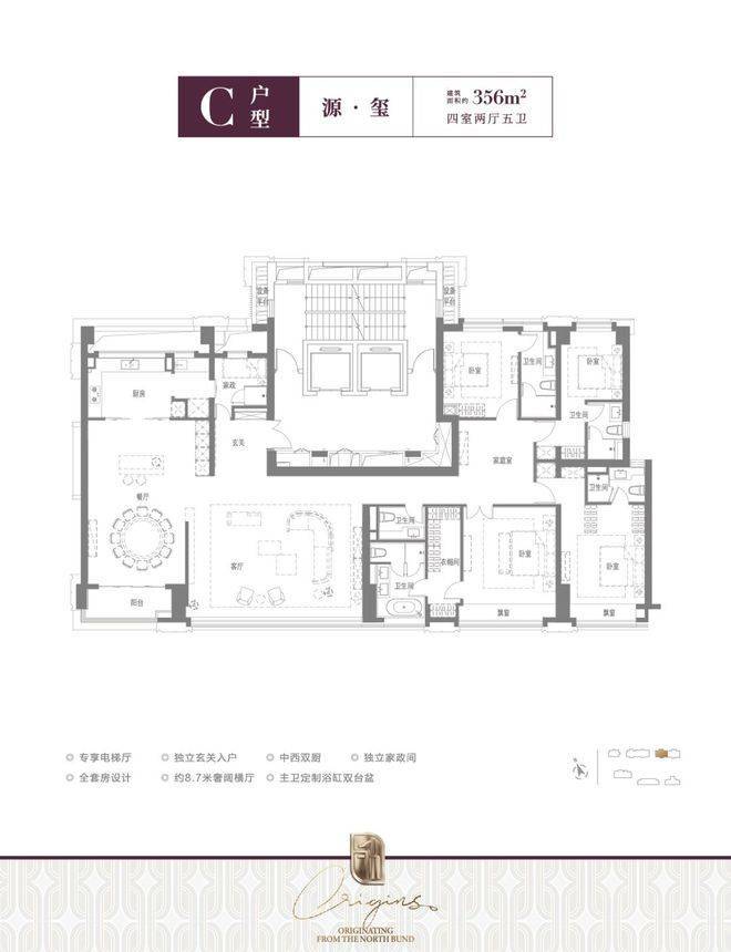 该户型奢阔的尺度和优秀的设计保证了豪宅纯粹的居住舒适度,3房的功能性也适配市场主流需求。