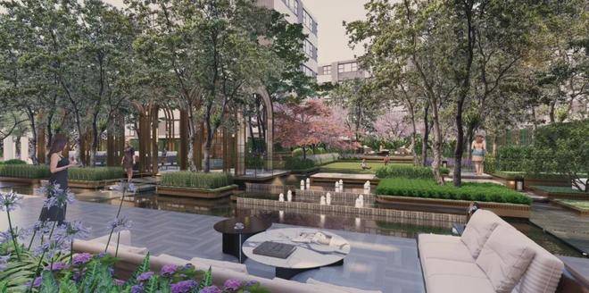 后花园设计借鉴巴黎乔治五世四季酒店廊架设计灵感,与荣宅中经典而雅致小花园设计,营造古典与现代,繁华与静谧共融的花园之境。