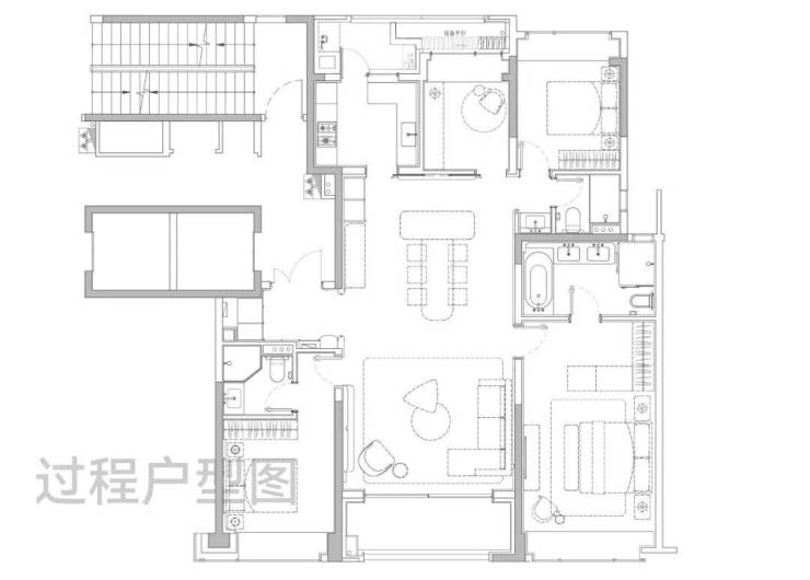 主卧套房尺度豪奢,可供业主配置步入式衣帽间,卫生间做到 双台盆+大浴缸+独立淋浴 的顶配,尊崇感十足!
