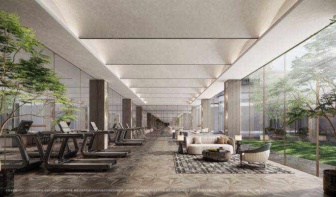3、搭载大落地窗环模设计的健身房,在欣赏窗外景色的同时,高端的健身器材,丰富的健身配套,都可以满足业主日常的健康所需。