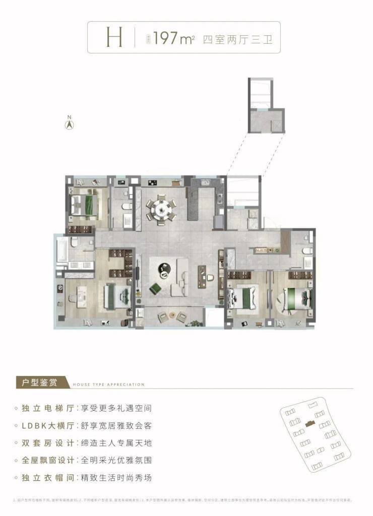 建面约160㎡四室两厅三卫,是盛青云锦的明星户型,专为追求高品质生活的中高端人群打造,极致阔绰的空间格局,彰显非凡格调,满足高端改善人群的居住需求,同时将社区景观优势发挥到极致。很多中高端人群,买房不仅看重实用性,更看重格调与品质,而这套户型,完美契合了他们的需求,极致阔绰的空间,精致的细节设计,彰显居者的身份与品味,成为盛青云锦最受欢迎的户型之一。
