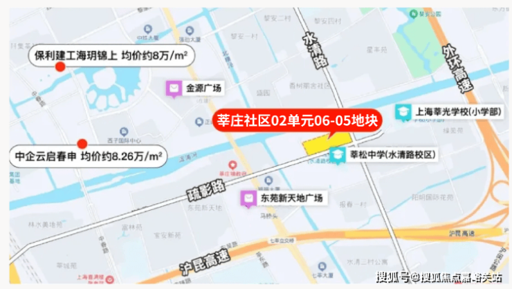 地块周边有莘松中学水清路校区和莘光学校,其中,莘松中学水清路校区就在该地块对面,这两所学校都是闵行区传统的公办名校,均建校超过30年。