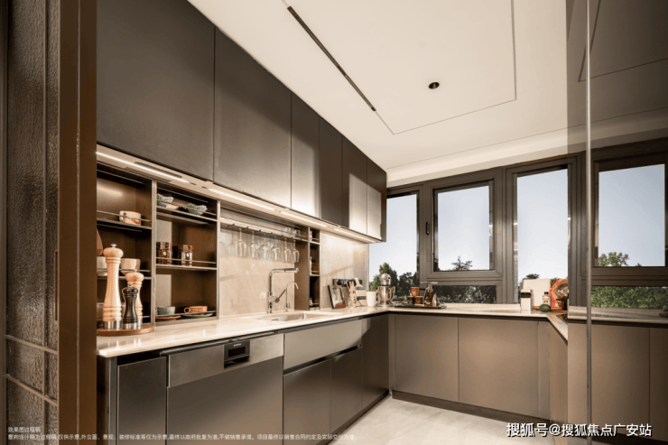 还交付一体化餐边柜,收纳能力惊人;同时该户型还配备专属家政空间,邻卫生间,动线更流畅,彻底解放阳台,阳台不用晾晒,完全用于观景或志趣空间。