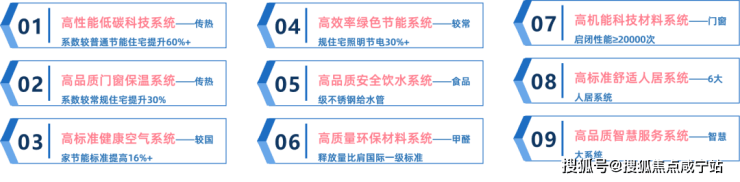 有着高性能低碳科技系统、高品质安全饮水系统、高品质智慧服务系统等“玖”维高能系统。以能耗水平远低于常规建筑物的建造标准,让房子能耗更低、碳排更少、居住体验感更佳。