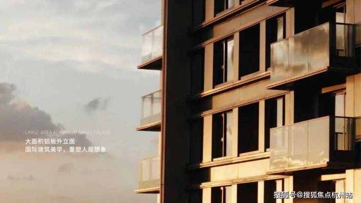 现代典雅立面,灰色搭配香槟金的色调,彰显不同建筑审美,外立面为品质铝板+玻璃幕墙,局部干挂石材和保温一体板,通过数控切割、精度弯弧、手工焊接、打磨抛光、七重清洁、烘干喷漆、高温定型等过十余步精细工艺,是高端住宅里 高于行业标准体系 的立面铝材。