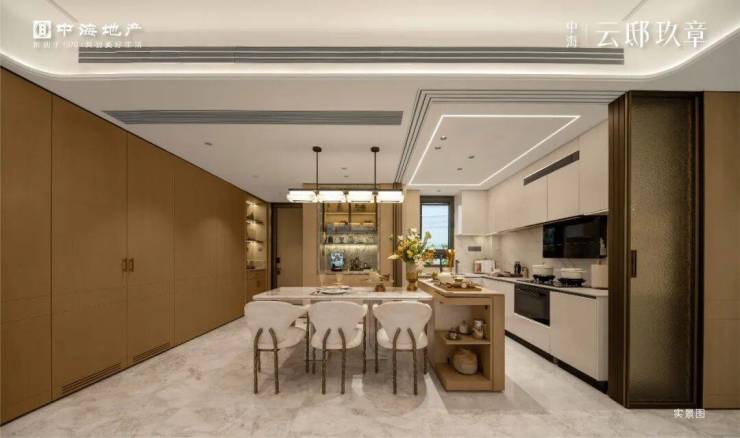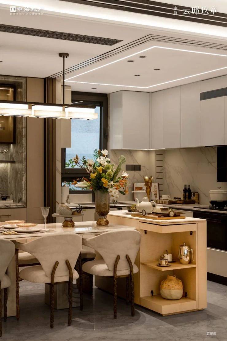 云邸玖章三期售楼处电话:400-8678-334☎️✽✽✽✽(官方认证)整体采用温润的影木色系,客餐厅背景墙以安第斯雪景等天然奢石交付,质感高级。就连精致的岛台也是交付的!