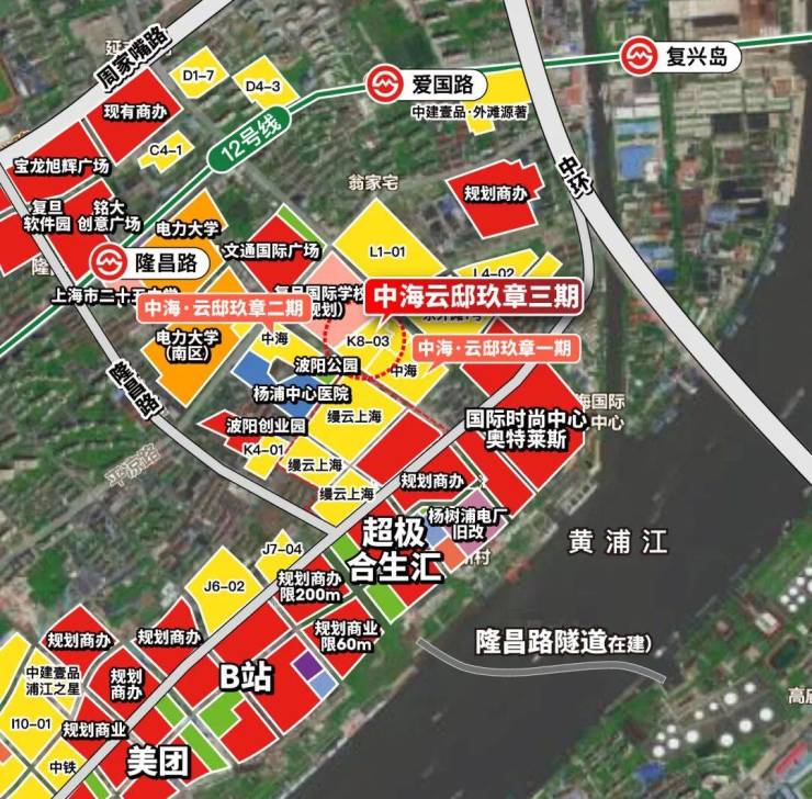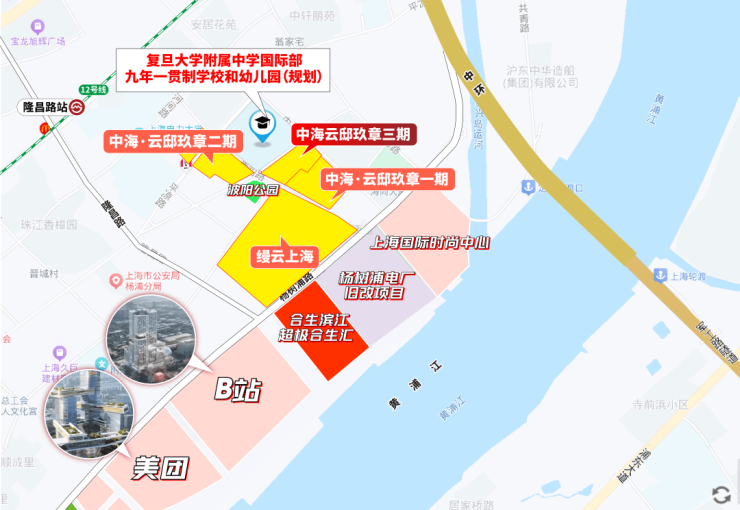 你看地图,项目占位杨浦滨江核心商务区,美团、抖音、B站还有超级合生汇的工地就在视线范围内,业主可以明显感受到地段价值在日新月异,就像一个快速进化的有机体,这种“当下即未来”的冲击力,是杨浦滨江其他项目难以提供的。