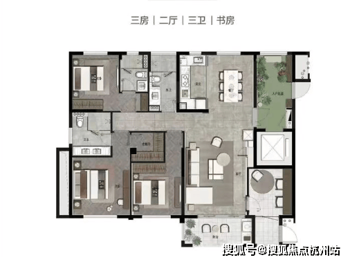 亮点:三套房设计、南向超大阳台、超高空间利用率