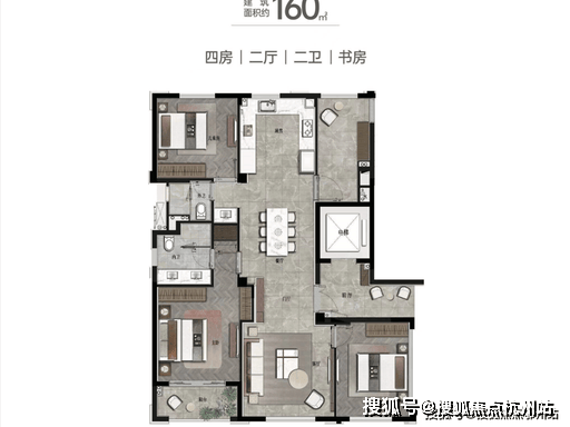 2. 建面约 172㎡ 4 房 2 厅 3 卫(主力改善)