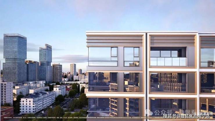 项目基底采用质感厚重的石材,上层第一界面则以全铝板+玻璃幕墙为主,更突破性地实现了“四面平权”设计——不同于多数楼盘只注重南面美观,侧面与北面简化处理的做法,保利誉滨江无论从正面、侧面还是背面观察,立面都保持精致统一的视觉效果。
