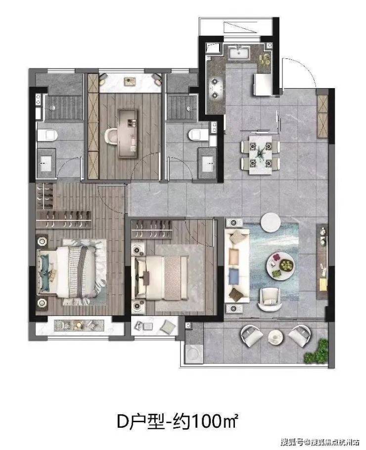 建筑面积约100㎡样板间实拍示意图