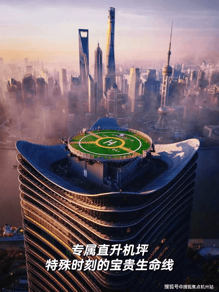 南边的塔楼顶部甚至设计了一座直升机停机坪,而这也是上海唯一的住宅停机坪。