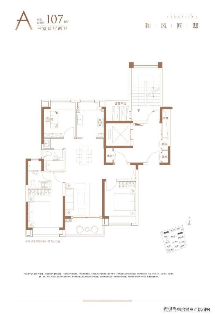 建面约107㎡3房2厅2卫户型,飞机户型+无连廊设计,做到空间0浪费,超高得房率,尺度感非常惊人。