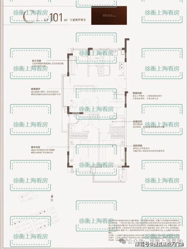建面约101㎡三房两厅两卫:(C1户型)