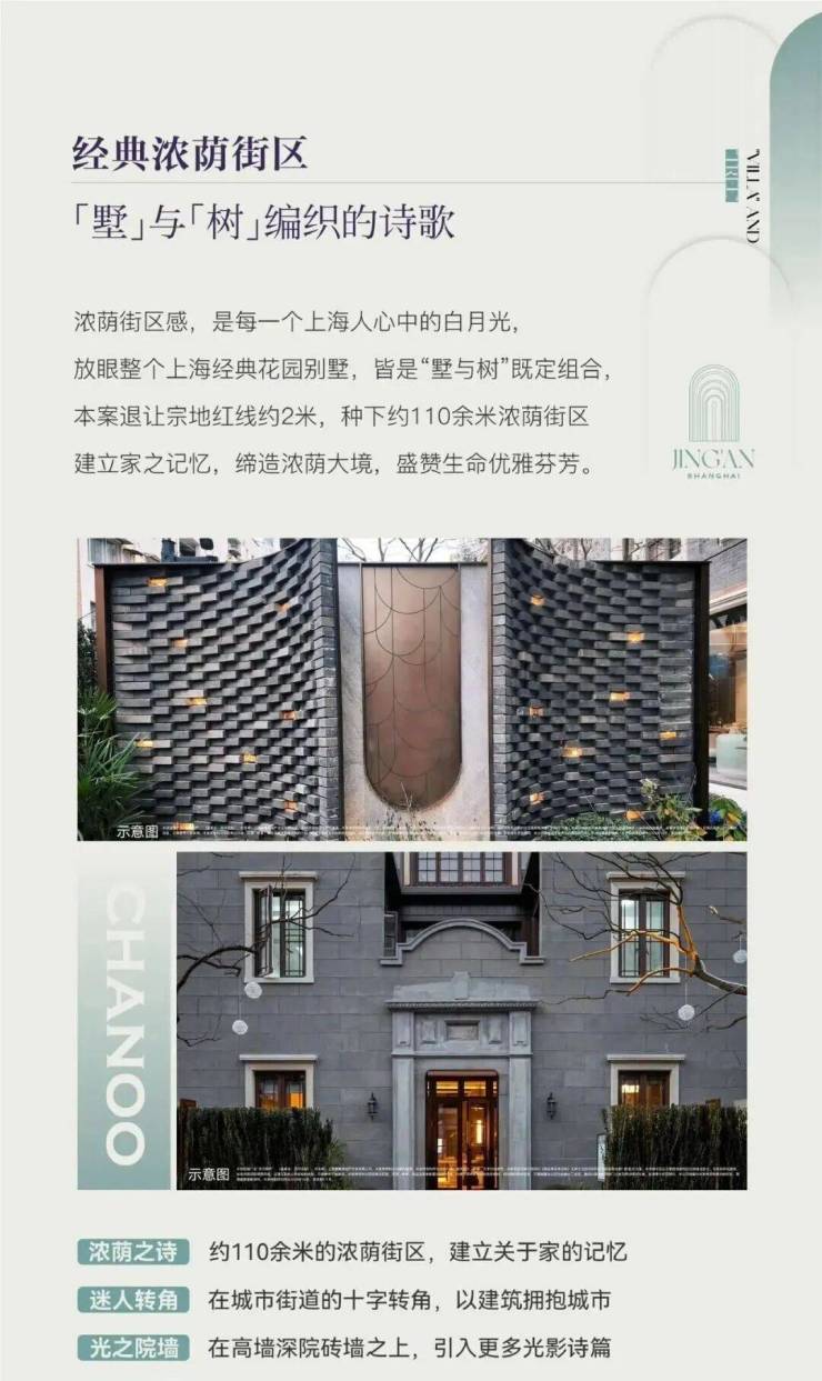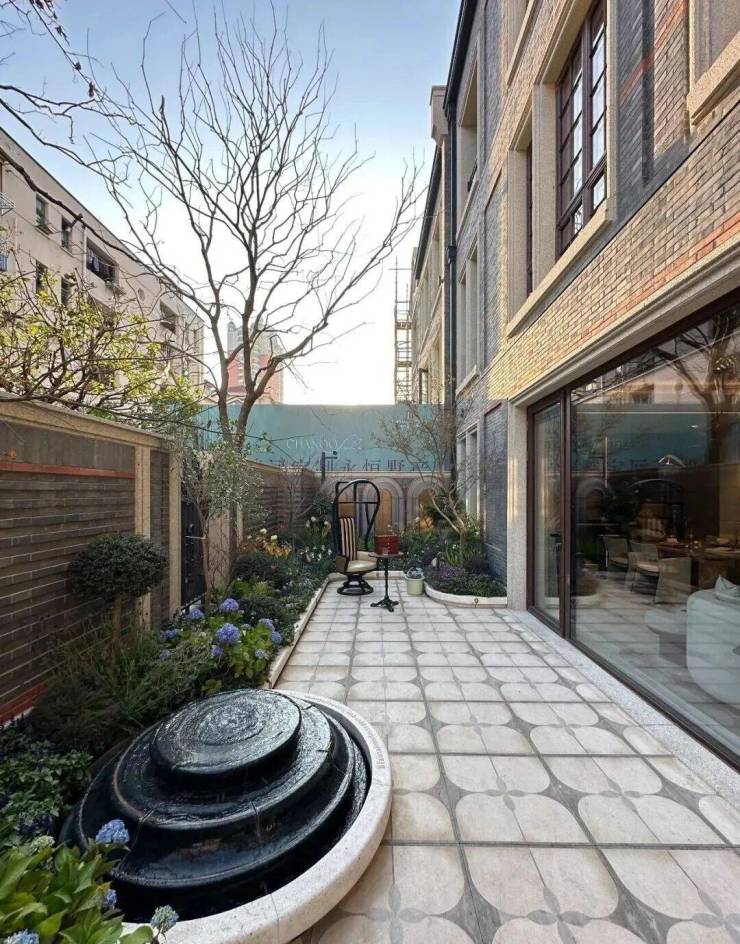 风貌别墅延续了上海石库门风格。青砖黛瓦,红色腰线,南向面宽最大的大概约15米左右。从一扇门、一扇窗中保留和创新,同时区别“里弄式”别墅的小格局、少采光、多浪费;空间布局灵活,满足不同高阶家庭生活需求,递呈出静安苏河畔难得的海派浓荫别墅。